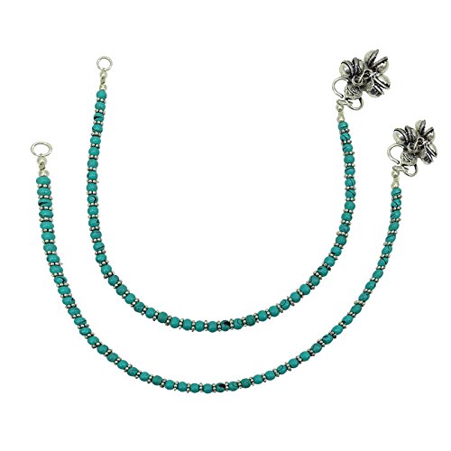 -. Title : Banithani Silvertone Oxidized Beaded Anklet Handcrafted Indian Fashion Jewelry For Women