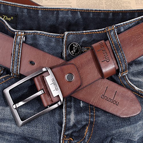 Bevel-edge belt with single-prong buckle in dark brass finish,wash by hand with damp cloth,comfortable, antifriction, perfect for Jeans or casual wear
