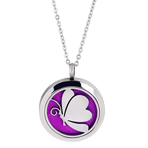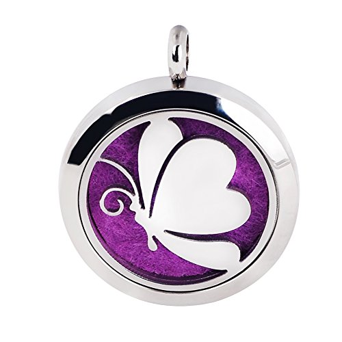 LHPNB 1 PCS 20MM/25MM/30MM Pattern of Butterfly Locket(With Chain) Essential Oil Aromatherapy Diffuser Three SIZE Available+3 Felt Pads