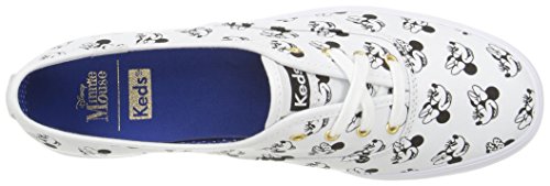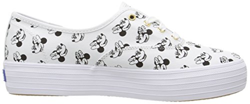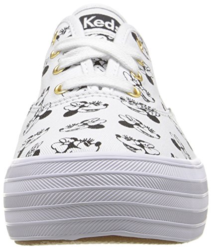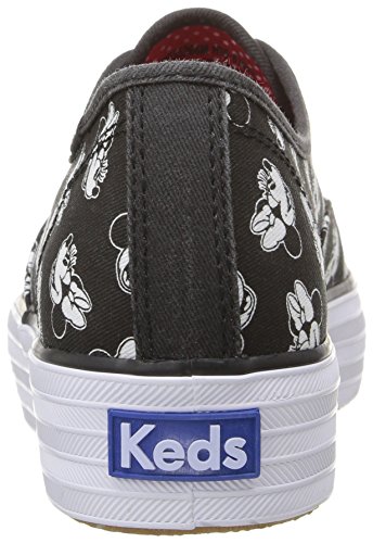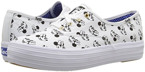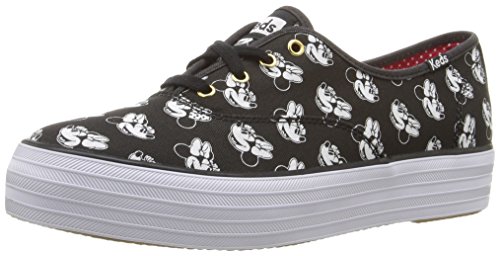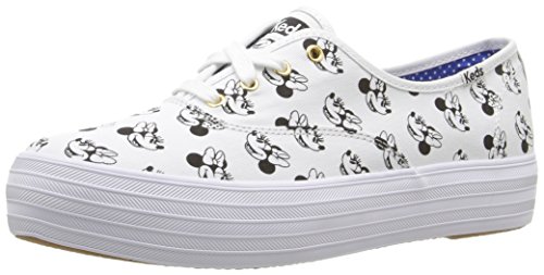 Product DescriptionThe keds minnie mouse triple oxford has a minnie print upper, including blue polka dot bows and minnie eyelets plus minnie silhouette print lining.0