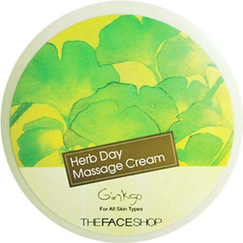 -. Binding : Misc. -. Brand : The Face Shop -. EAN : 8809475127265 -. Feature : 150ml / All Skin Types / sest for Whitening -. Label : The Face shop -. Manufacturer : The Face shop -. MPN : FS573-03 -. PackageQuantity : 1 -. PartNumber : FS573-03 -. ProductGroup : Beauty -. ProductTypeName : BEAUTY -. Publisher : The Face shop -. Studio : The Face shop -. Title : The Face Shop Herb Day Massage Cream Ginkgo 150ml -. UPC : 889068425341