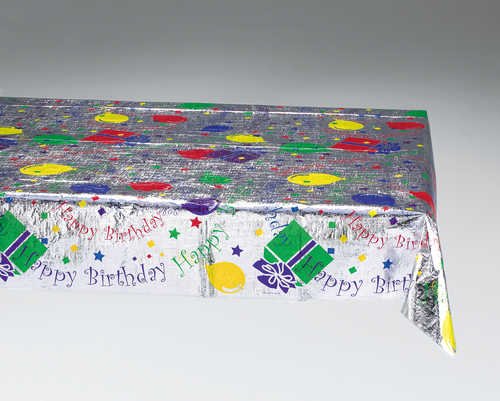 Product DescriptionHappy Birthday Metallic Tablecover. Approximately 54in x 108in.0