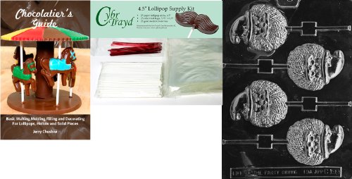 Cybrtrayd Crafty Santa Head Lolly Chocolate Mold with Chocolatier's Bundle of 25 Lollipop Sticks, 25 Cello Bags, 25 Red Twist Ties and Chocolatier's Guide