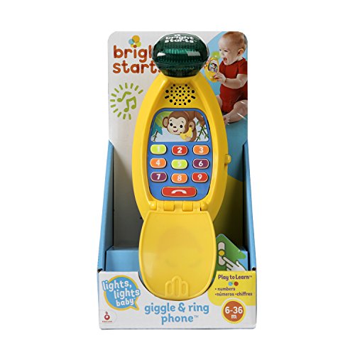 Fun Comes First!™ What could get the giggles going more than a banana-shaped phone? The Giggle & Ring Phone™ from Bright Starts™ entertains with 10 numbered buttons that activate lights, sounds, music and play to learn phrases. Baby can "peel" open to answer or flip the peel shut to close. Babies love holding the banana up to their ear to talk and play.Feature