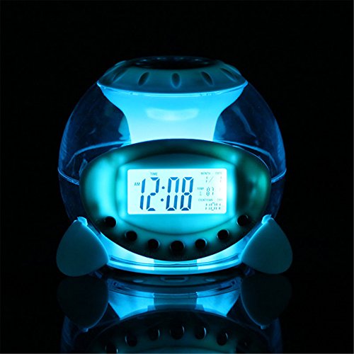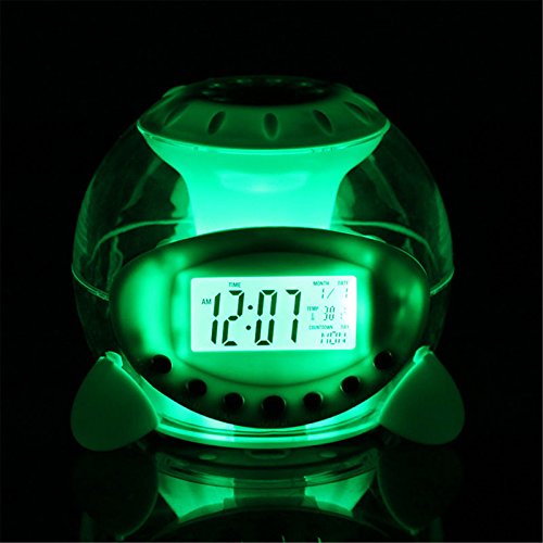 - Title : Multi-function Digital Natural Sound LED Light LCD Screen Alarm Clock 7 Color Calendar Temperature Clock [Christmas Gift]White