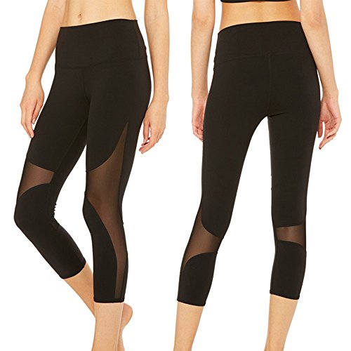 -. Title : CROSS1946 Sexy Women's Mesh Yoga Fitness cropped Pants Soft Tummy Control Leggings Waistband Workout CaP.R.Is