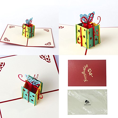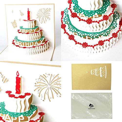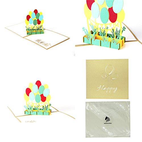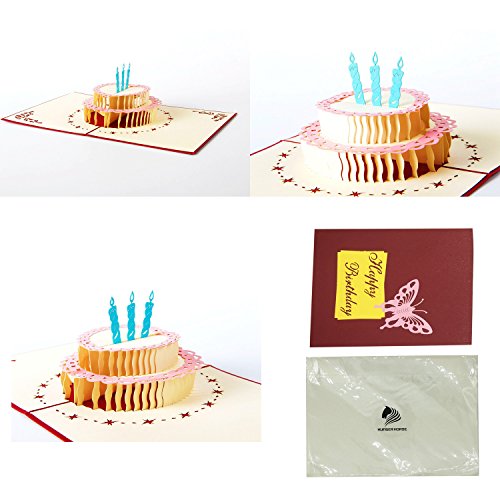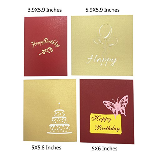 HUNGER Handmade 3D Pop Up Cake Balloon Gift Birthday Cards Creative Greeting Cards Papercraft , 4 Pack