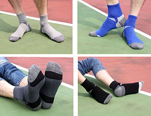 -. Feature : Machine wash available and tough enough to wear / Anti blister hiking trekking socks:reduce pain, blisters, pressures and moisture / Moisture wicking socks:High quality combed cotton fabric and airy mesh is designed to make moisture away from the body keeping your feet comfy and dry / Arch support socks: A elastic fabric around the middle of the foot makes socks hug your foot tightly, to ensure they stay right in place, minimizes friction and supports the arch of your foot / Ideal for outdoor sports-basketball,soccer,snowboard,camping,skiing