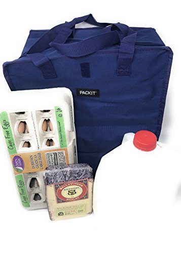 Packit Freezable Grocery Bag - Navy Blue 14.5" H x 12.5" D x 7.5" W (3" H x 6.5" W x 6.5" D Folded)
