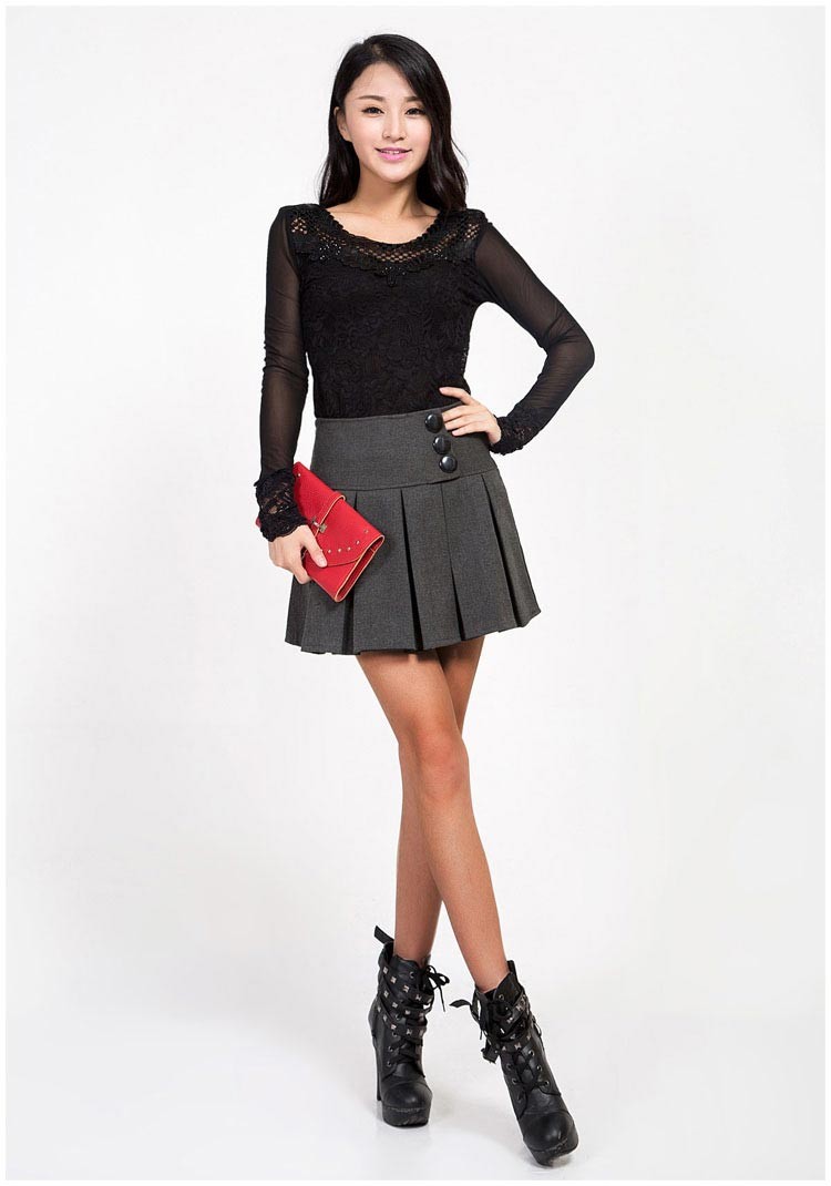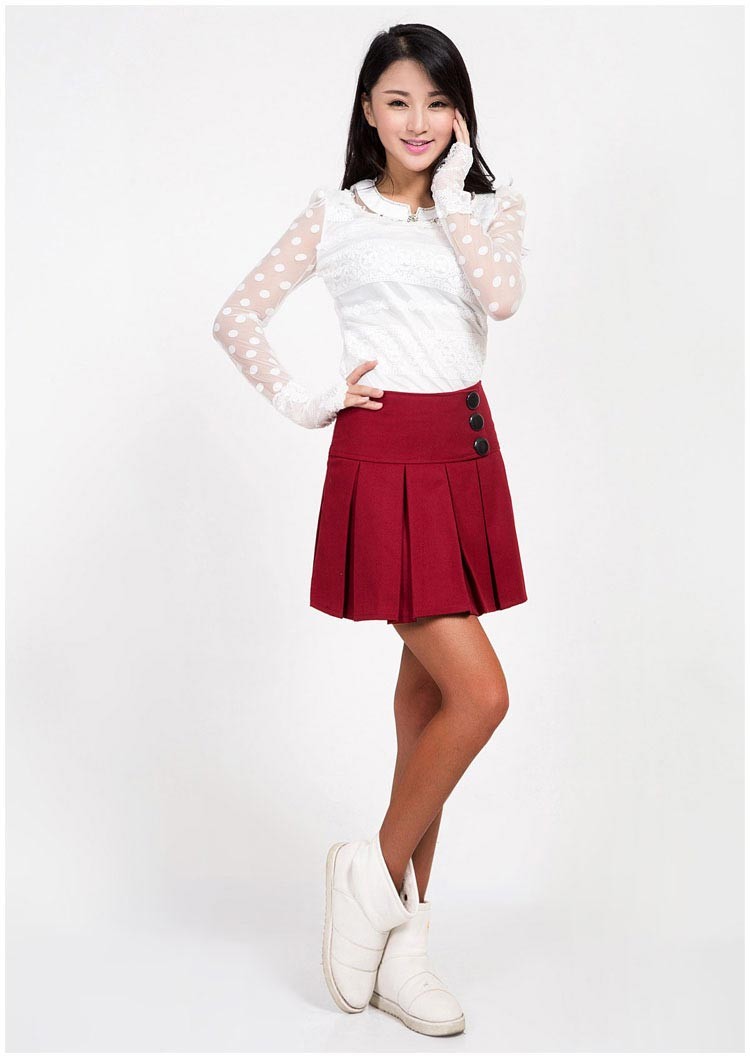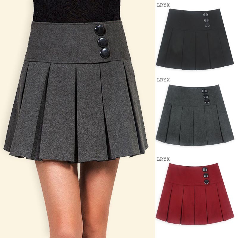 大きめのボタンがデザインされたサイドジッパーのプリーツミニ丈スカートです♪