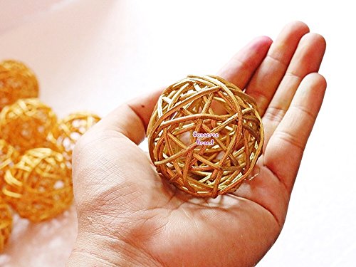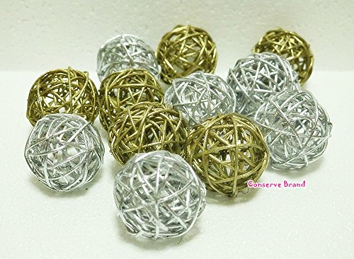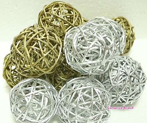 Christmas Gifts : Small Golden And Silver Rattan Ball, Wicker Balls, DIY Vase And Bowl Filler Ornament, Decorative spheres balls, Perfect For Decoration And Party 2.5 inch, 12 Pcs.