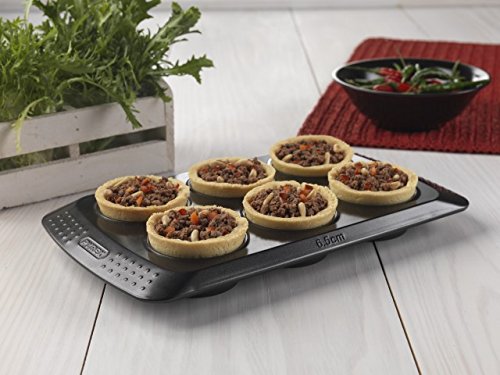 -. Binding : Kitchen -. Brand : Pyrex -. EAN : 5052449043532 -. Feature : Made of carbon steel which is a very durable material which conducts heat evenly in order to ensure that everything is baked uniformly / 0.4mm thick / All products feature a silicone polyester total non-stick coating / Coating extensively tested to provide good results for food release and resistance to abrasion / Can withstand temperatures of up to 230 degrees -. Label : Pyrex -. Manufacturer : Pyrex -. Model : MBCBMT6 -. MPN : F109S -. PackageQuantity : 1 -. PartNumber : F109S -. ProductGroup : Kitchen -. ProductTypeName : HOME -. Publisher : Pyrex -. Studio : Pyrex -. Title : Pyrex Non Stick 6 Cup Muffin Tin