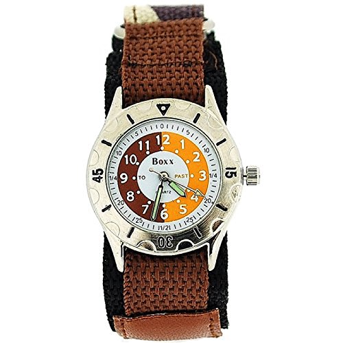 -. Title : Boxx Time Teacher Brown Army Camouflage Velcro Strap Boys Sports Watch