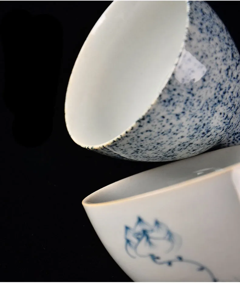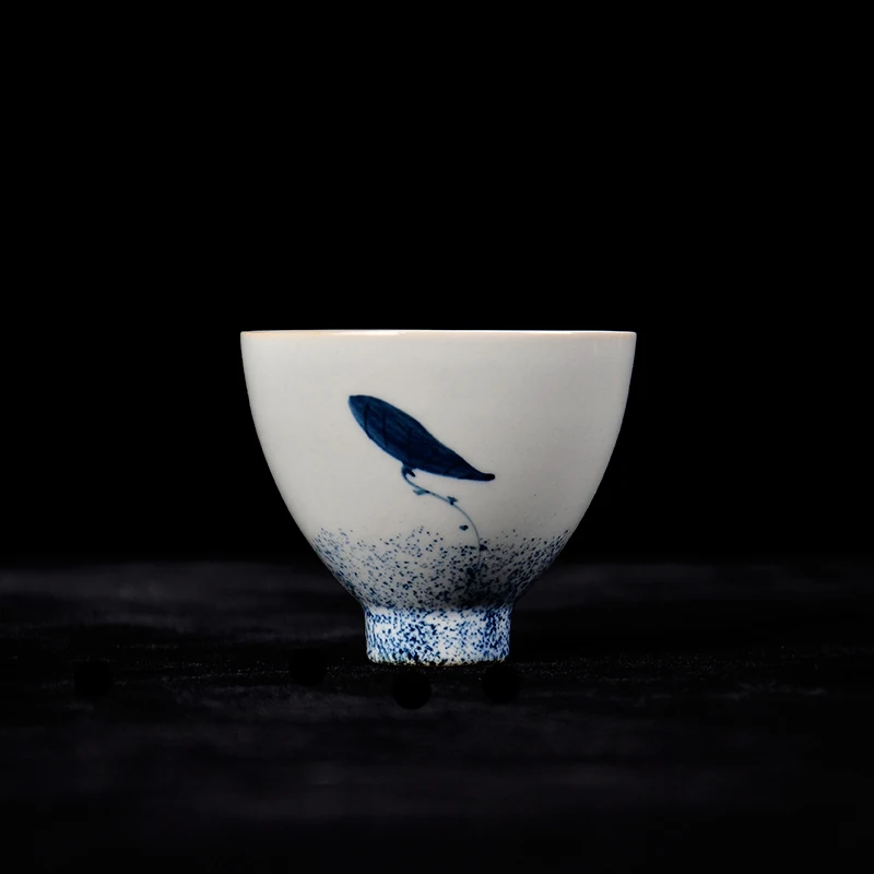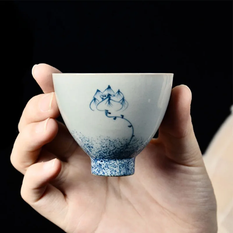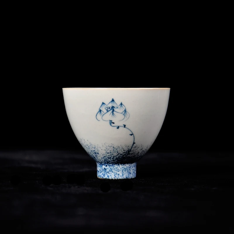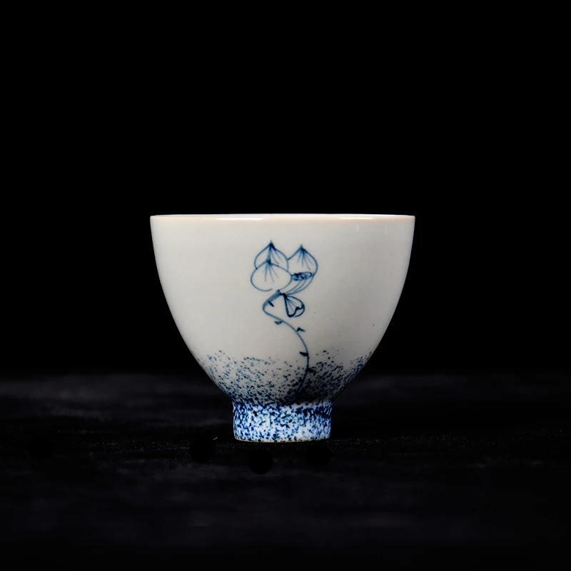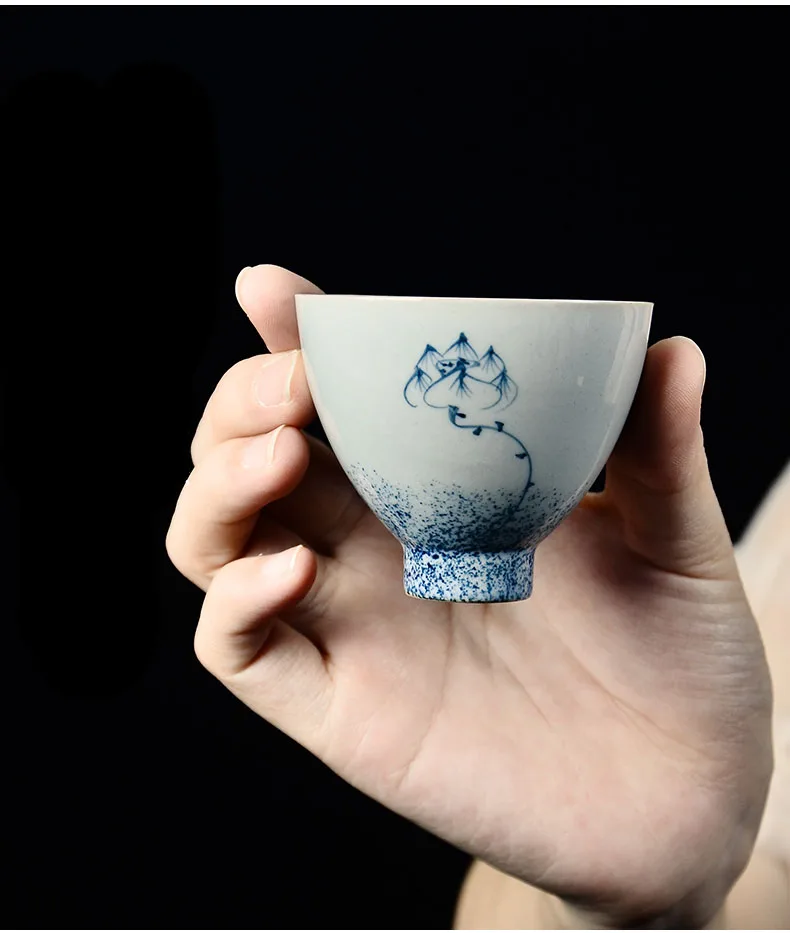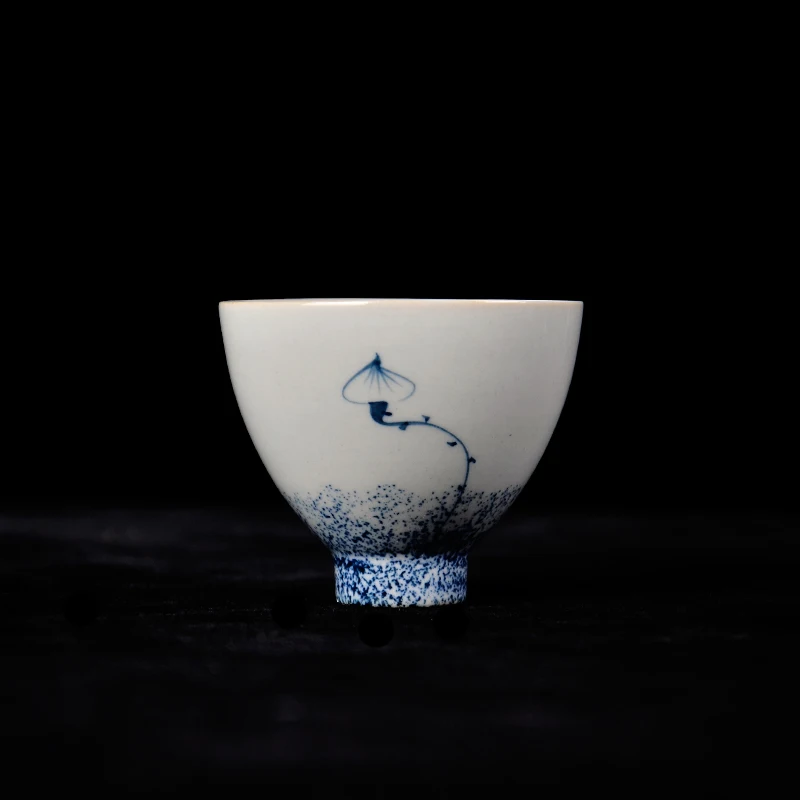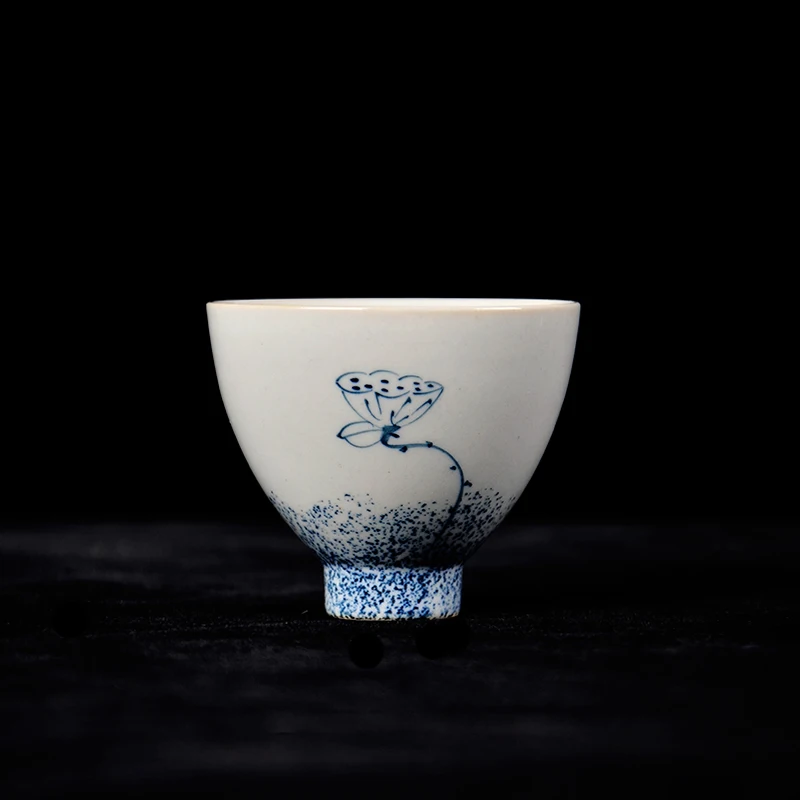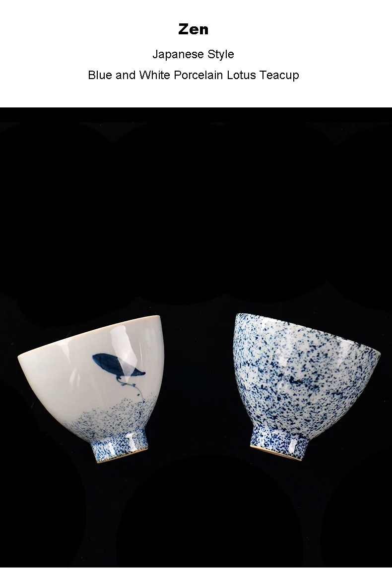 Chinese Ceramic Art:Zen Japanese Style Blue and White Porcelain Lotus Teacup