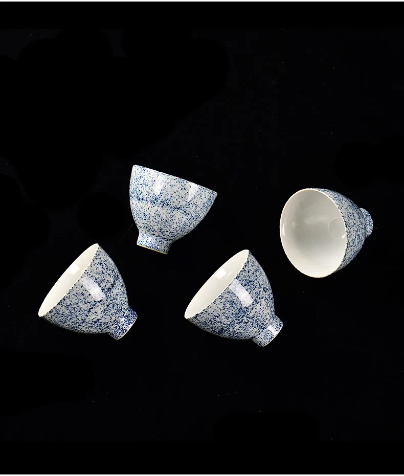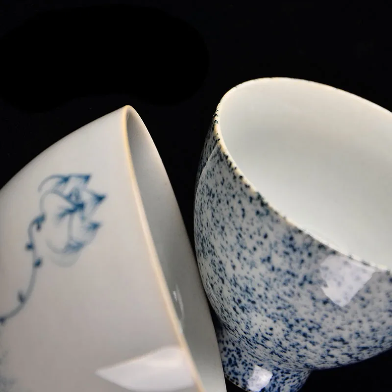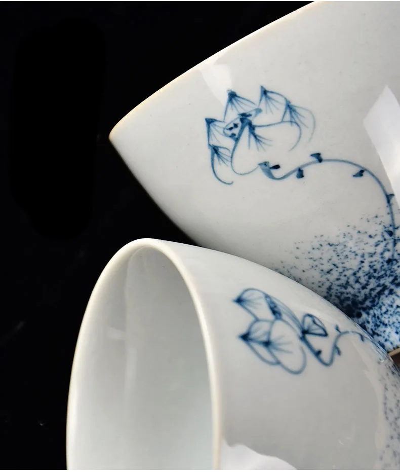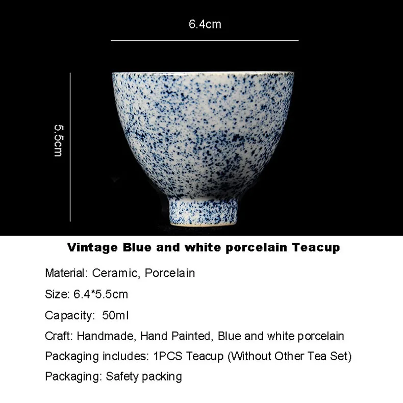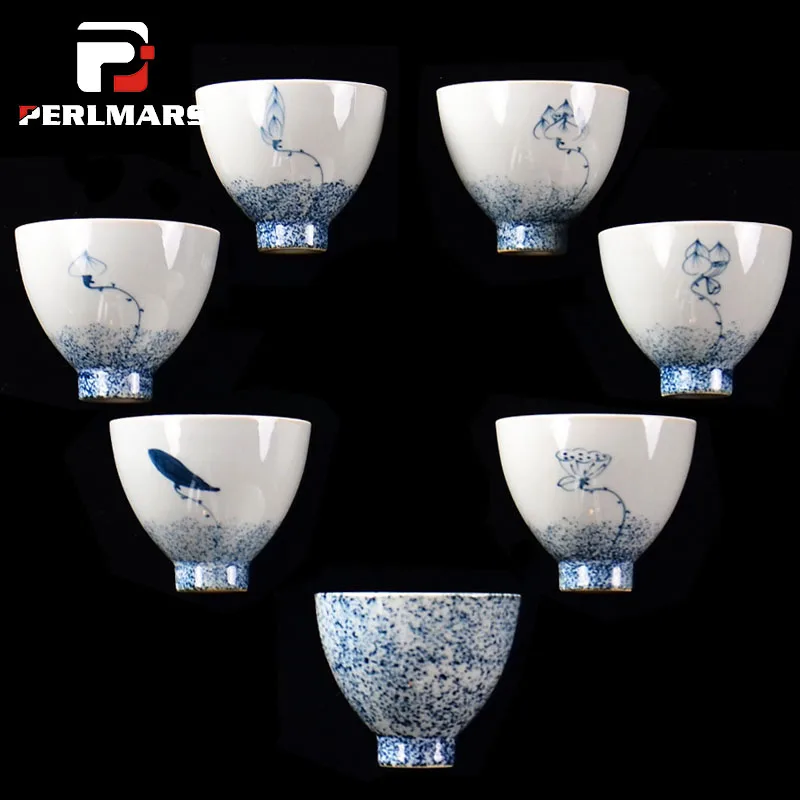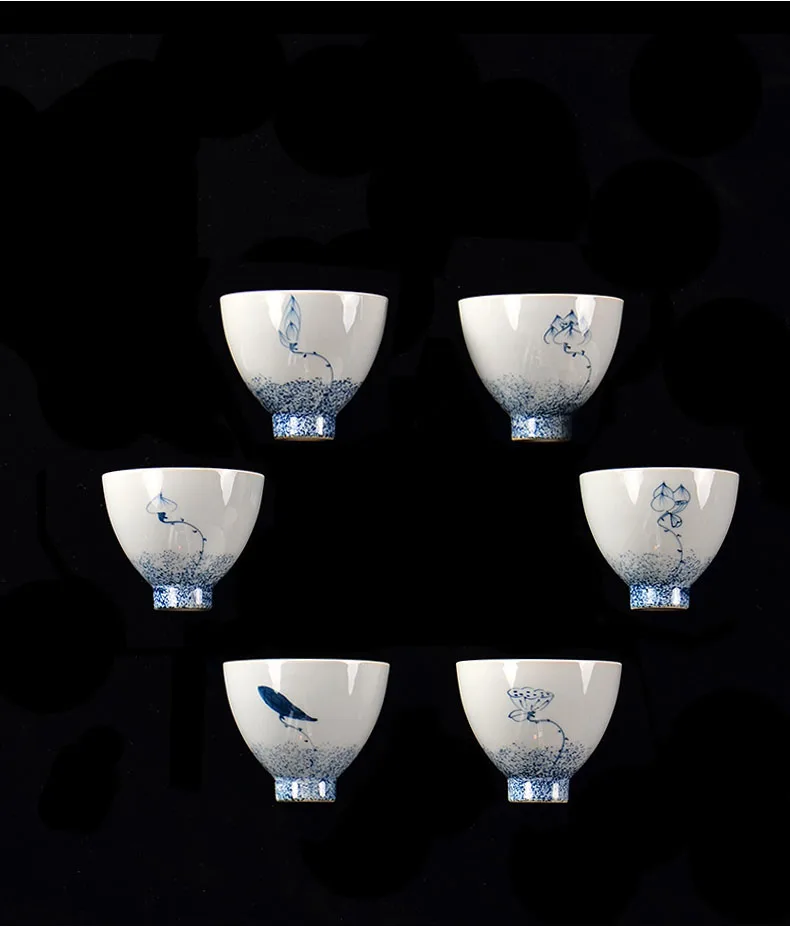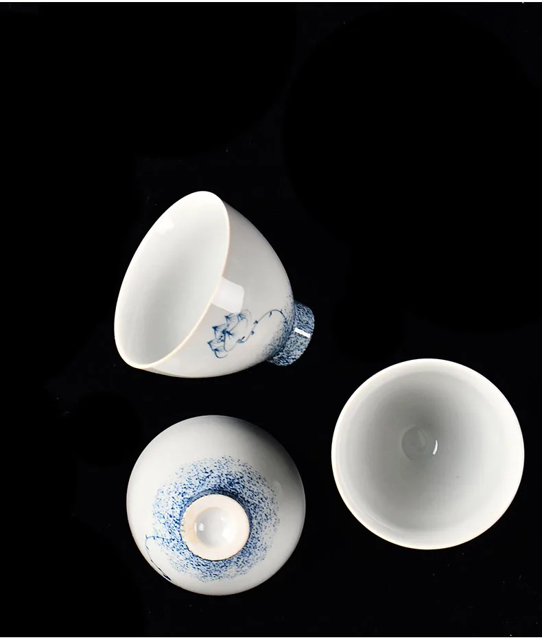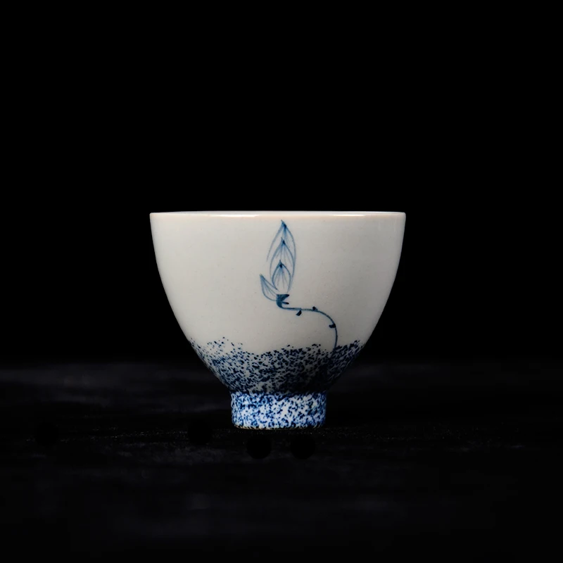 Chinese Ceramic Art:Zen Japanese Style Blue and White Porcelain Lotus Teacup