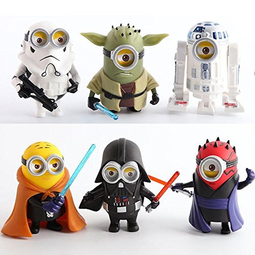-. Feature : STAR WARS / DESPICABLE ME CROSSOVER: Minions from 'Despicable Me' or beloved 'Star Wars' characters? These cool action figures are both! / FOR FANS OF ALL AGES: Whether you're a child who likes Minions or an adult who grew up adoring Star Wars, one thing is certain: you will love these collectible toys. / 100% NON-TOXIC MATERIAL: The figures are made of safe, non-toxic PVC. / PLAY SET OF 6: Contains 6 figures of Minions cosplaying as popular Star Wars character, enough to re-enact many scenes from your favorite films! / GREAT GIFT IDEA!: Even if you're not a fan yourself, you can grab a set for your children or your friends and see their eyes light up with joy!