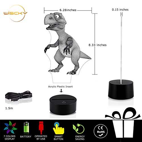 3D Night Lights for Children, Kids Night Lamp, Dinosaur Toys for Boys, 7 LED Colors Changing Lighting, Touch USB Charge Table Desk Bedroom Decoration, Cool Gifts Ideas Birthday Xmas for Baby Friends