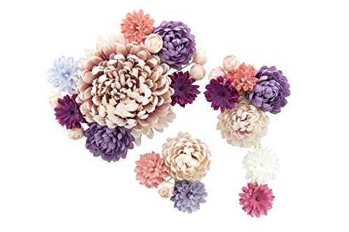 -. Title : 髪飾り 3点セット 紫系 パープル ピンポンマム 菊 花 フラワー 蕾 コサージュ ぶら飾り コーム Uピン 成人式向け 卒業式向け 振袖向け 袴向け ヘアアクセサリー 日本製