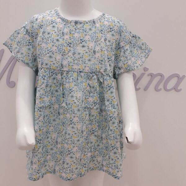 블루칼라의 면50수 잔꽃나염블라우스입니다. 잔잔한 꽃나염과 얇은 우븐원단이 무더운 여름에 시원하게 입으실 수 있는 아이템입니다.코사지 판장식이 더욱더 큐트하게 연출해 줍니다. 몸에 달라붙지 않는 라인으로 예쁘고 시원하게 연출 해 줍니다.