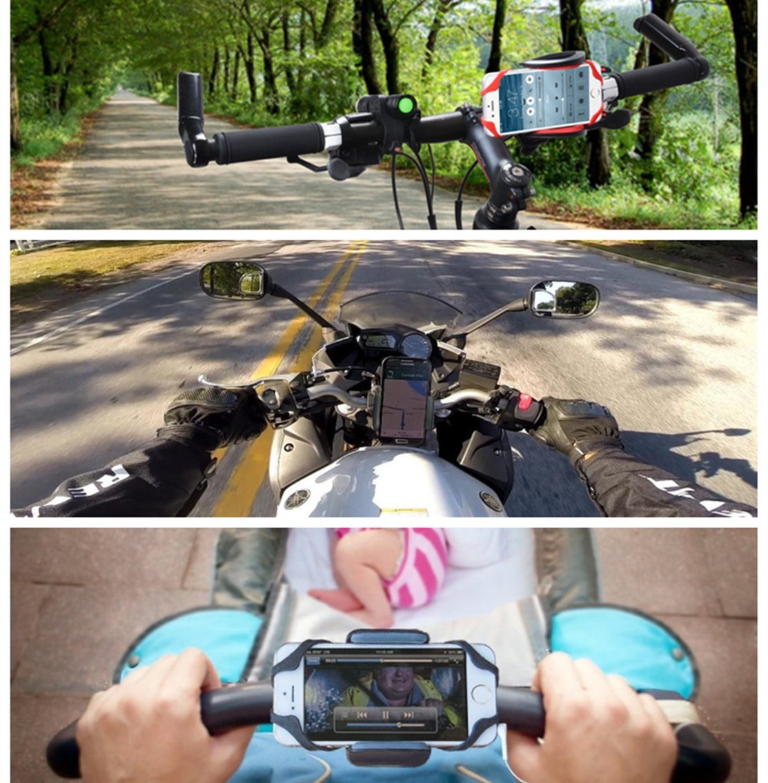In addition to bike and bicycle, baby stroller, silver car, running machine etc can be used.