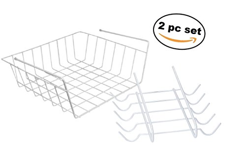 Deluxe 2pc Under the Shelf Set Organizer Rack and Mug Rack, White