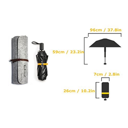-. Feature : ☆ Travel Folding Umbrella - Made from high-density water-repellent ultra soft fabric, lighter and more resilient, the canopy keeps you dry and makes it easy to shake off the raindrops. Just 10 in 26(cm) in length when folded, is very easy and convenient to be stored in your handbag,backpack,rucksack...whenever you go or travel. / ☆ Compact Size, Easy Carrying Totes Umbrella - This umbrella measures 40 in (102 cm) in diameter when open, and is large enough to shelter both you and your loved one from the downpour or the sinister sun. / ☆ Vented Double Canopy Design - Double umbrella cloth, Nanoscale metal coating, UV (Ultraviolet) sunblock with black vinyl coating protection layer above, effectively block more than 98% UV, which makes you feel cooler in the hot sun. / ☆ Top Quality - It features a strong aluminum center pole and durable ribs with an optimal balance of elasticity and rigidity. Ultra comfort handle, Strong aluminum center pole and durable ribs withstand high winds and prevent the umbrella from flipping inside out. / ☆ Package Including: 1 x VanFn Umbrella (Including The Felt Umbrella Cover). VanFnShop 100 % satisfaction guaranteed. We are so confident in the quality of our product that we offer a 60-day satisfaction guarantee! If you are unsatisfied, simply contact us to return the product for a full refund.