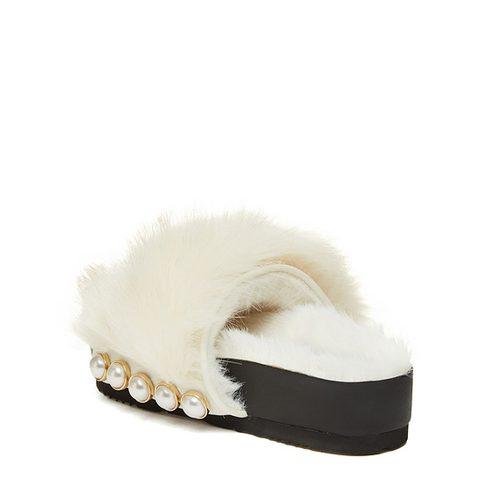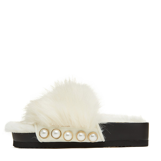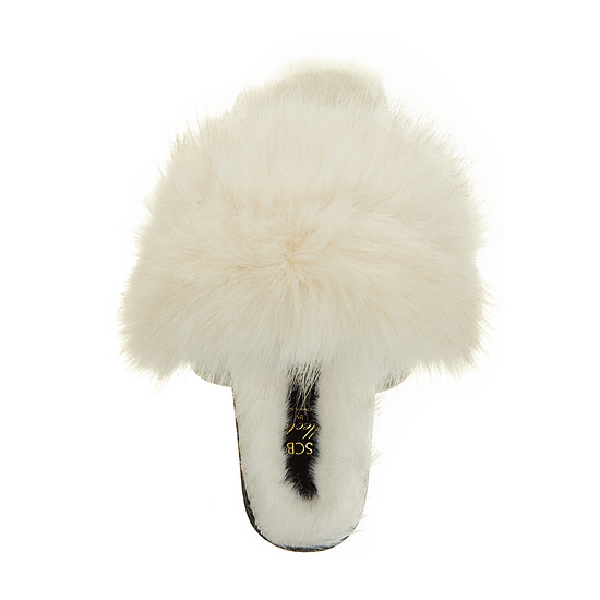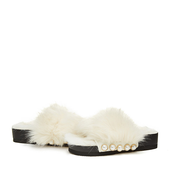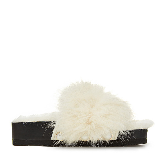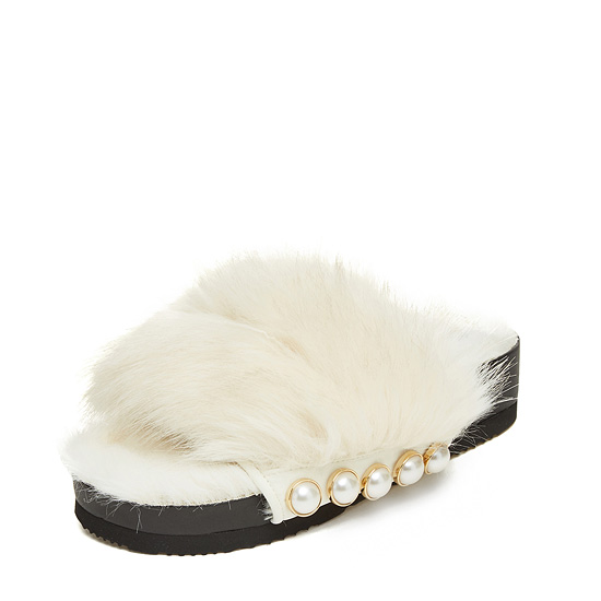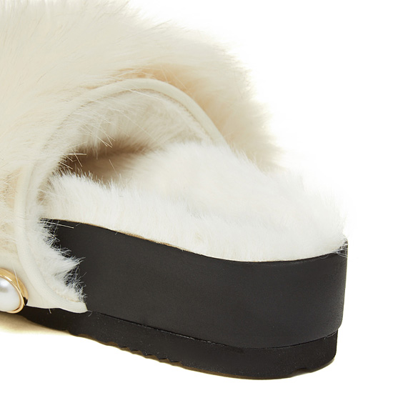 - 페이크퍼를 적용한 슈콤마보니의 시그니처 슬리퍼.