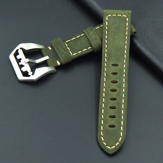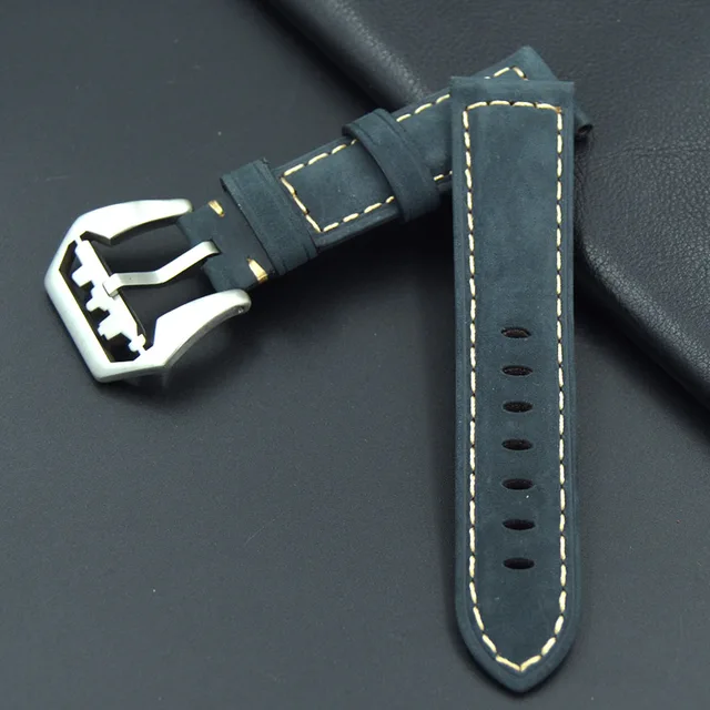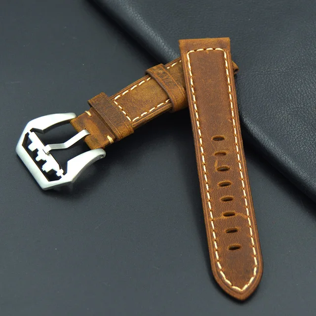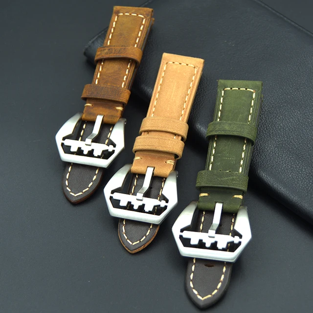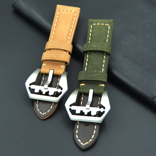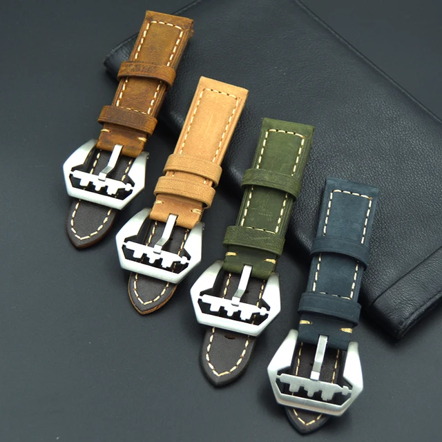 | [해외]수제 22 미리메터 24 미리메터 이탈리아 빈티지 정품 가죽 시계 밴드 패션 스테인레스 스틸 버클 시계 스트랩 파네 시계 |