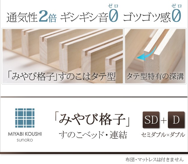 【セット構成】セミダブルベッドフレームx1、ダブルベッドフレームx1