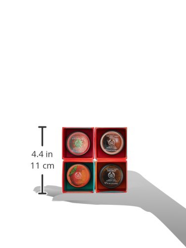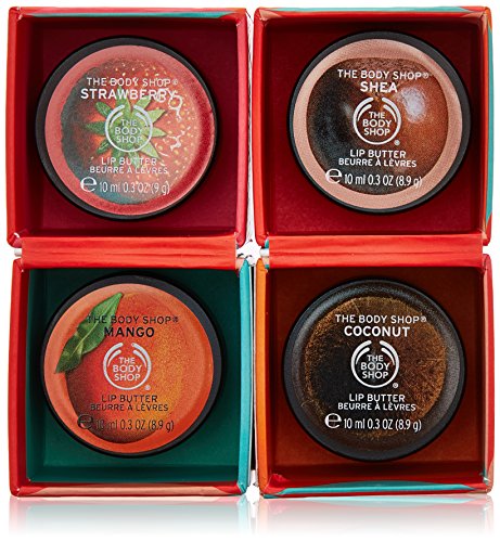 Give it some lip with The Body Shop Lip Butters Kiss Me Cube gift set. This set of four lip butters features a mix of favorite flavors to scent your lips, while nourishing and hydrating them: subtle Shea, tropical Coconut, fruity Mango, and sweet Strawberry. All lip butters are paraben-free, silicone-free, and gluten-free.Feature