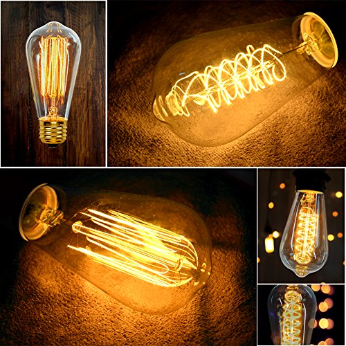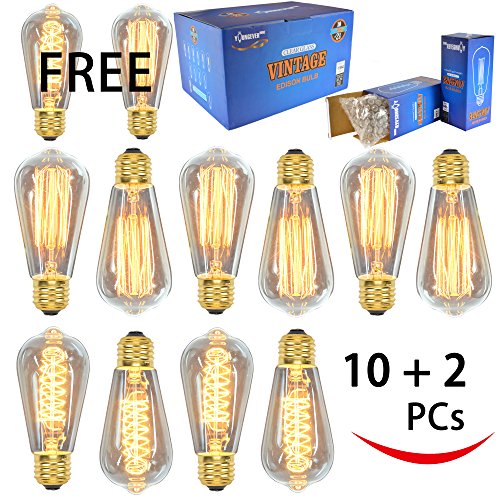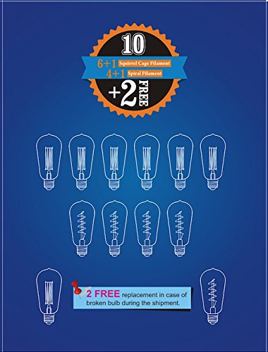 12 Pack - 60W - ST64 - E26 - 7 Squirrel Cage and 5 Spiral - dimmable - Vintage Edison Light Bulbs - Clear Glass - industrial vintage style - Youngever Home - 2 FREE
