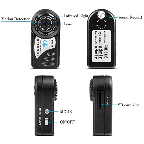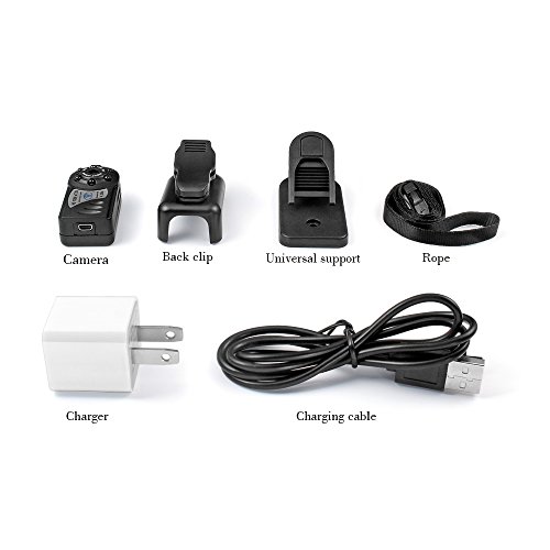 -. Feature : Strong Function:This is a HD mini hidden camera,Support real-time video recording,IR night vision,snapshot. / Lens Angle Rotatable: World's smallest Dvr video camera with vertically rotatable and 140 degree wide angle lens. / TOP Night Vision IR Camera:6pcs black LED around the lens which are invisible and covert (LED not light up in use) with a night visual range up to 10 feet,it¡¯s an ideal portable home security camera. / Built in Solid 400mah Battery: It ensures the continous record ,day time video up to 2 hours and night vision video up to 1.5 hours when camera fully charged.Or much longer time if you attach an external power pack. / Loop Recording and Time Stamp : The date and time stamp can be adjustable and loop recording is defaulted to overwrite the oldest file with the newest which is also adjustable.(Loop recording turn on/off and time stamp fix could be adjust as your want).