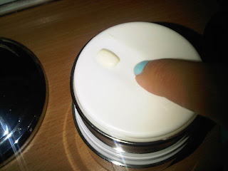 Slowly turn the dispenser anti-clockwise (as indicated by the arrow) and cream will emerge from the hole. (If you turn too much and too fast, a LOT of cream comes out and there’s no way in putting it back into the tub so it can be a very wasteful and costly mistake!) I like the idea of this dispenser as it protects the cream from dirty fingers and protects the formula from undergoing changes due to the environment (e.g. sunlight).