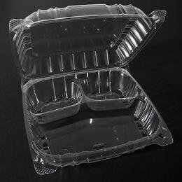 Dart C90PST3, 8"x8"x3" ClearSeal 3-Compartment Clear Sandwich Container With Clear Hinged Lid, Take Out Pastry Dessert Fruit Deli Food Disposable Containers (50)