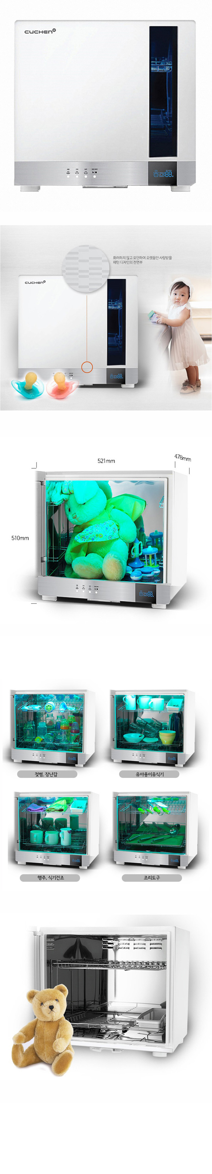 Full Stainless and UV Sterilizing Lamp (Power, sterilization, drying),Triple safety device,3 stage sterilization and drying time adjustment