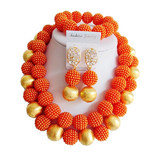 -. Title : laanc fashion Nigerian wedding African bead 2 layers orange and gold jewelry set