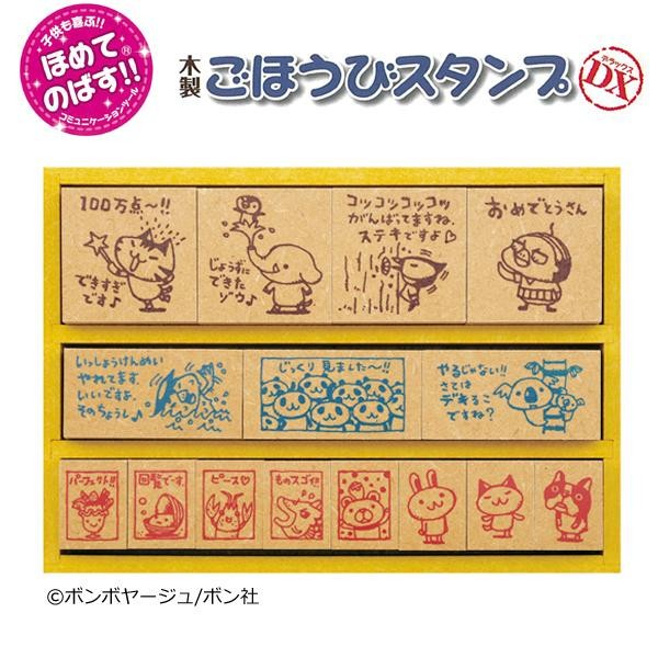 大・中・小の3サイズのスタンプが15個入ったDXセット。テストやドリル、連絡帳やメモなど使い方も様々です。木製収納BOX入り。 |