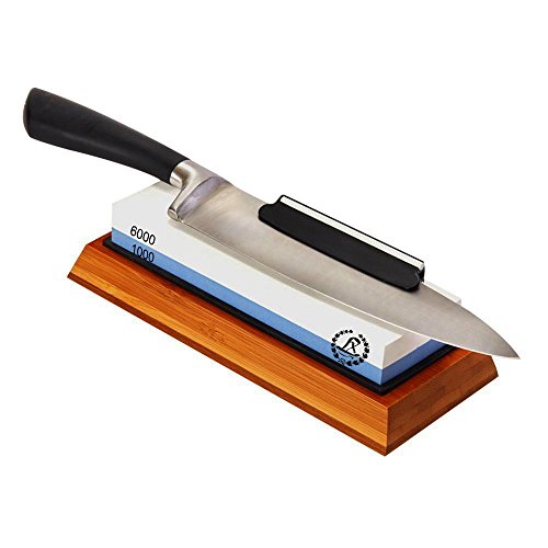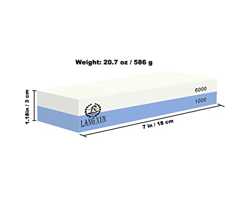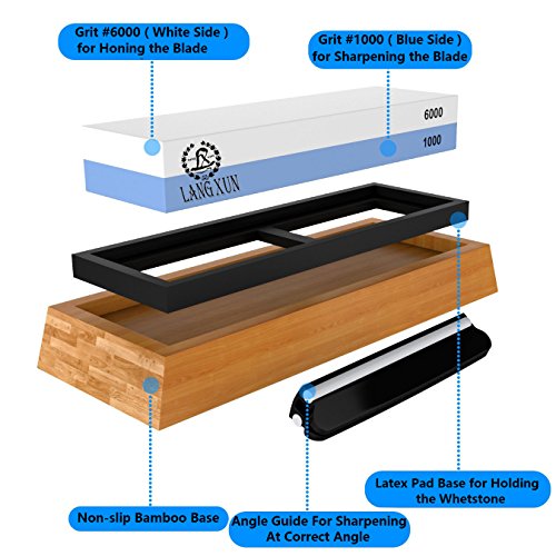 Langxun 2-In-1 Knife Sharpener Stone, 2 Side Grit 1000/6000 Whetstone | Bonus Non-Slip Bamboo Base & Angle Guide