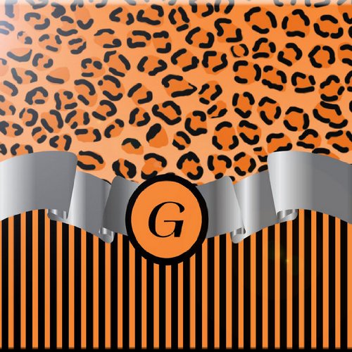 Rikki Knight RK-12intilec-2311 12" X 12" Letter "G" Orange Leopard Print Stripes Monogram Design Ceramic Art Tile
