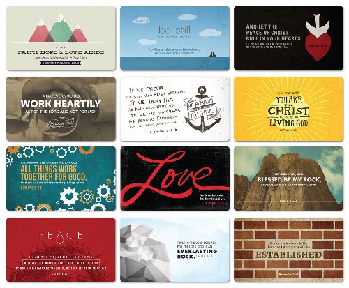 -. Feature : 2"x3.5" (standard business-card size) / Bible Verses Included / Psalm 18:46, Psalm 46:10, Proverbs 16:3, Colossians 3:23 / Isaiah 26:4, Matthew 16:16, John 14:27, 2 Timothy 2:12-13 / Romans 8:28, 1 Corinthians 13:13, Colossians 3:15 , 1 John 4:19