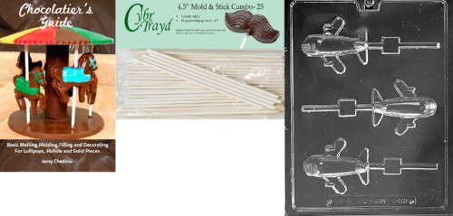 Cybrtrayd 45St25Bk-K153 'Airplane Lolly' Kids Chocolate Candy Mold with 25 4.5-Inch Lollipop Sticks and Chocolatier's Guide