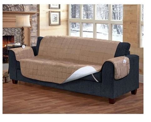 -. Feature : •Sofa cover measures 70" x 65" / •No hot or cold spots / •Super-soft micro-suede fabric / •Tan Color, Side Pockets / •4 adjustable warming levels