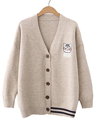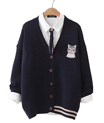 -. Title : キャンディ少女 森ガール系 カーディガン レディース 猫 刺繍 カーデ 学生服 Vカーディガン ゆったり ニット