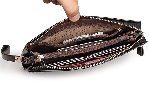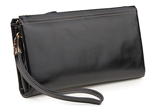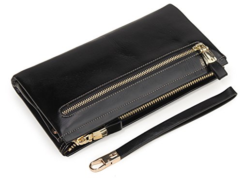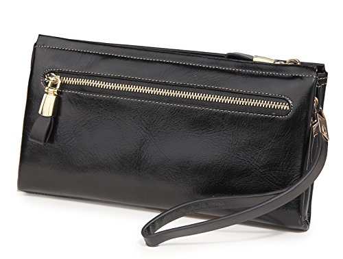 KorMei Women's Large Capacity Luxury Genuine Leather Wristlet Wallet With Zipper Pocket