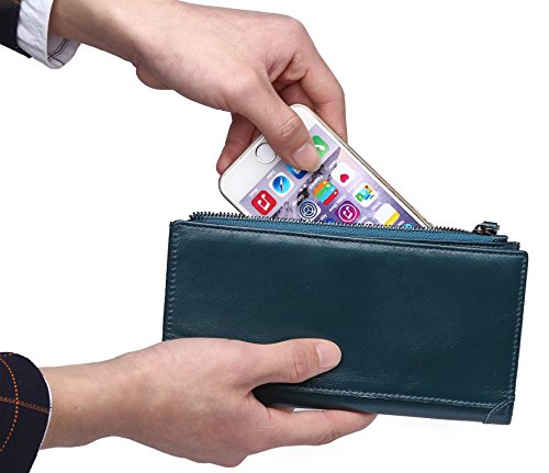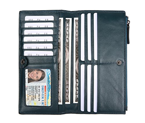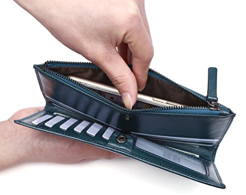 Women's Genuine Leather Wallet Multi Card Purse Long Bifold Zipper Wallet