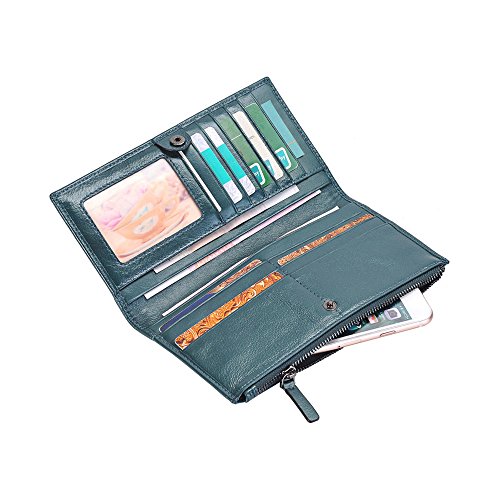 PRACTIAL DESIGN: There are 12 card slots, 3 full compartments and 1 Zipper pocket that can hold lots of cash comfortably, meeting your needs for daily use of both cards and cash. In addition, one display window to hold your ID card or driver license