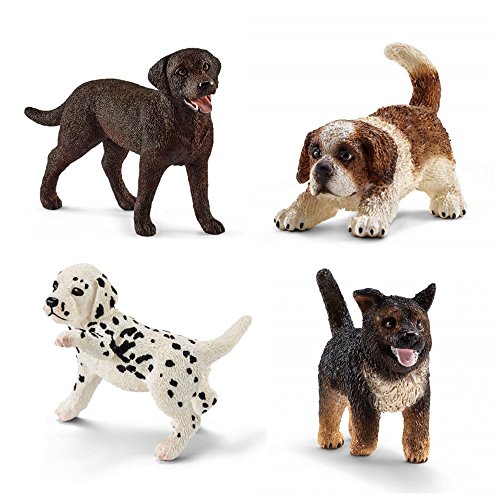 -. Feature : Schleich dogs and puppies set - featuring 4 figures. / Dog figurines from schleich - female chocolate labrador retriever (13834), dalmatian puppy (16839), st. Bernard puppy (16834), and german shepherd puppy (16832). / Dog and puppy gift set - perfect for any dog lover! / Schleich animals set - hand painted quality! / Labrador retriever, st. Bernard, german shepherd, and dalmatian figurines - for play or display!
