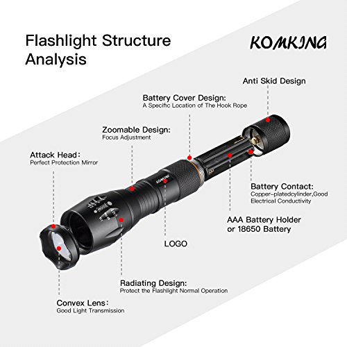 LED Tactical Flashlight, Komking T6 Handheld Flashlights Portable Adjustable Focus Zoom Waterproof 5 Modes Flashlight Torch For Cycling Hiking Camping Emergency