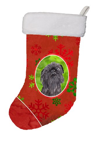 Caroline's Treasures SC9587-CS Brussels Griffon Red Snowflakes Holiday Christmas Stocking, 11 x 18", Mulitcolor
