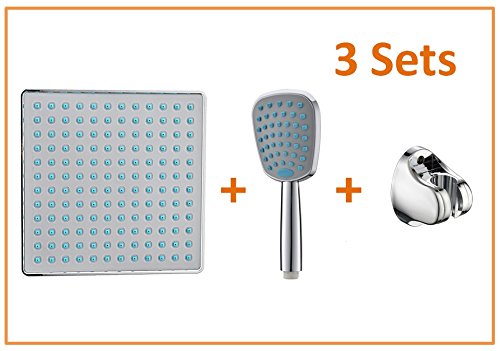 Rainfall Shower Head,3 Sets Suit include 8" High Pressure Square Fixed Shower Head and Handheld Shower Head and Holder All Chrome Plated by CagonLife